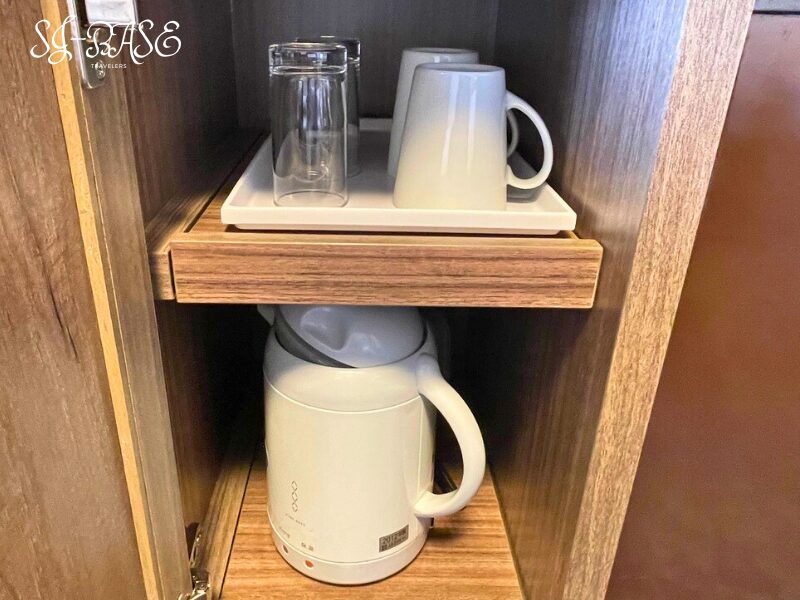 電気ケトルとカップがあるので、朝は部屋でコーヒーを飲みながらゆっくり準備ができました。