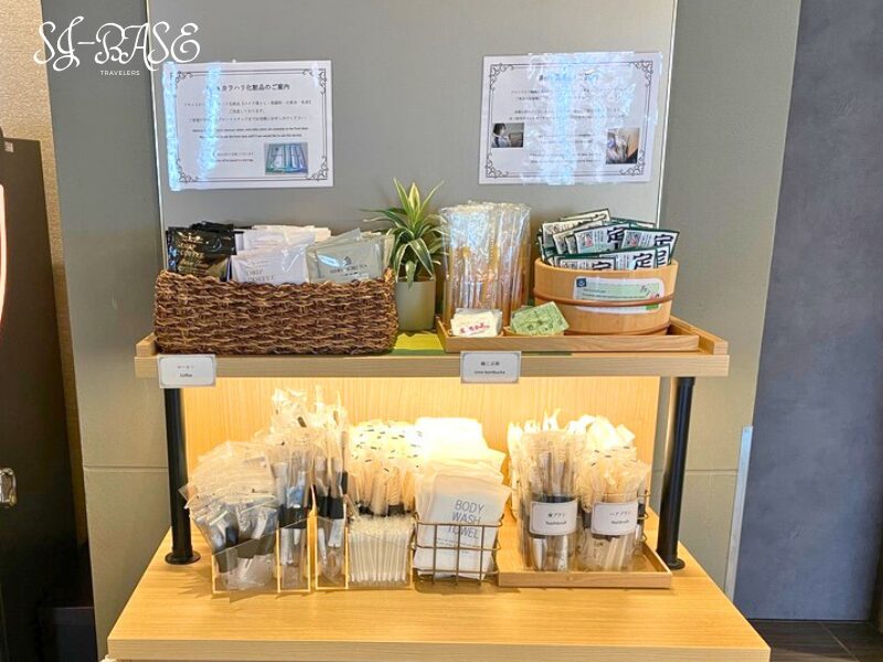 ロビーには、必要なアメニティを自分で選んで持っていけるコーナーが設けられていました。