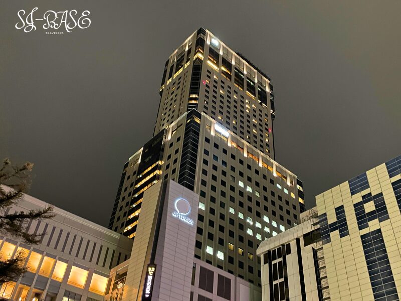 バスを降りるころにはすっかり日が暮れ、JRタワーが美しくライトアップされていました。