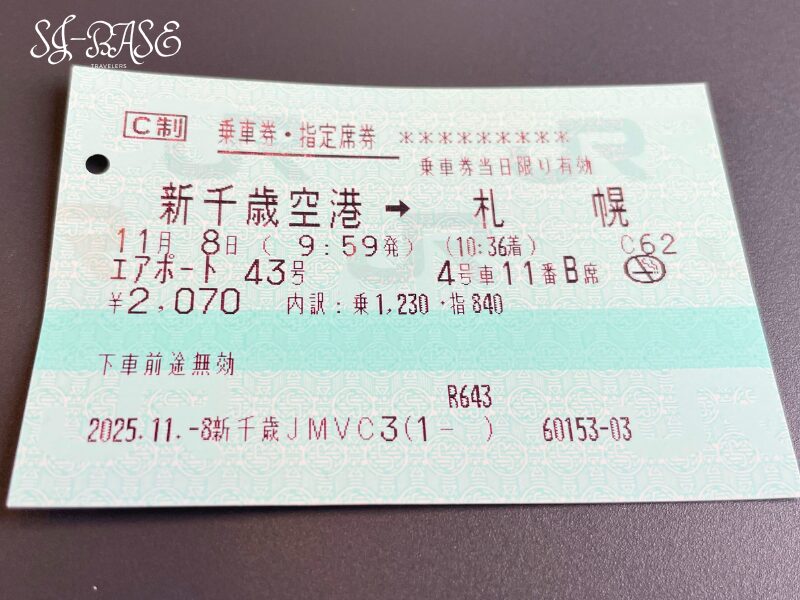 新千歳空港から札幌までは、指定席の空港ライナーで向かいます。