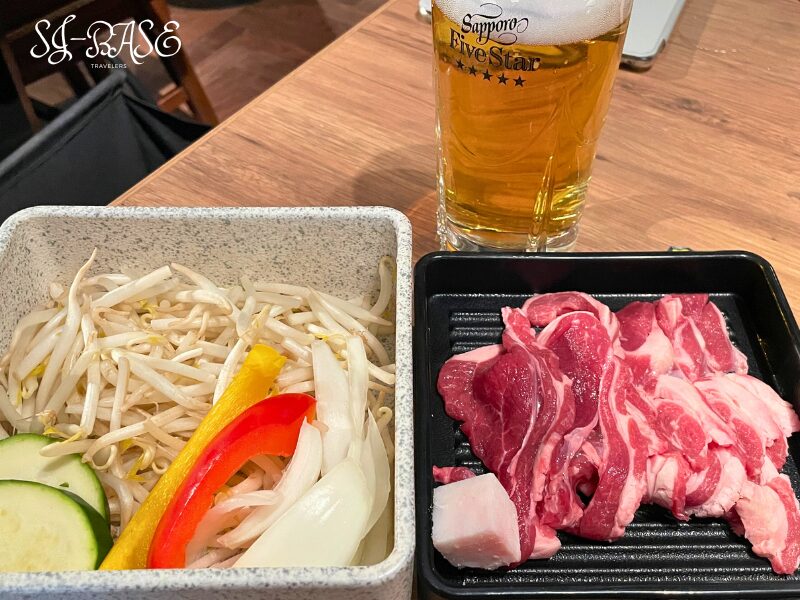 食べ放題・飲み放題もあったのですが、今回はラムジンギスカン焼き野菜セットとサッポロビール園限定・サッポロファイブスター生ビールをオーダー。